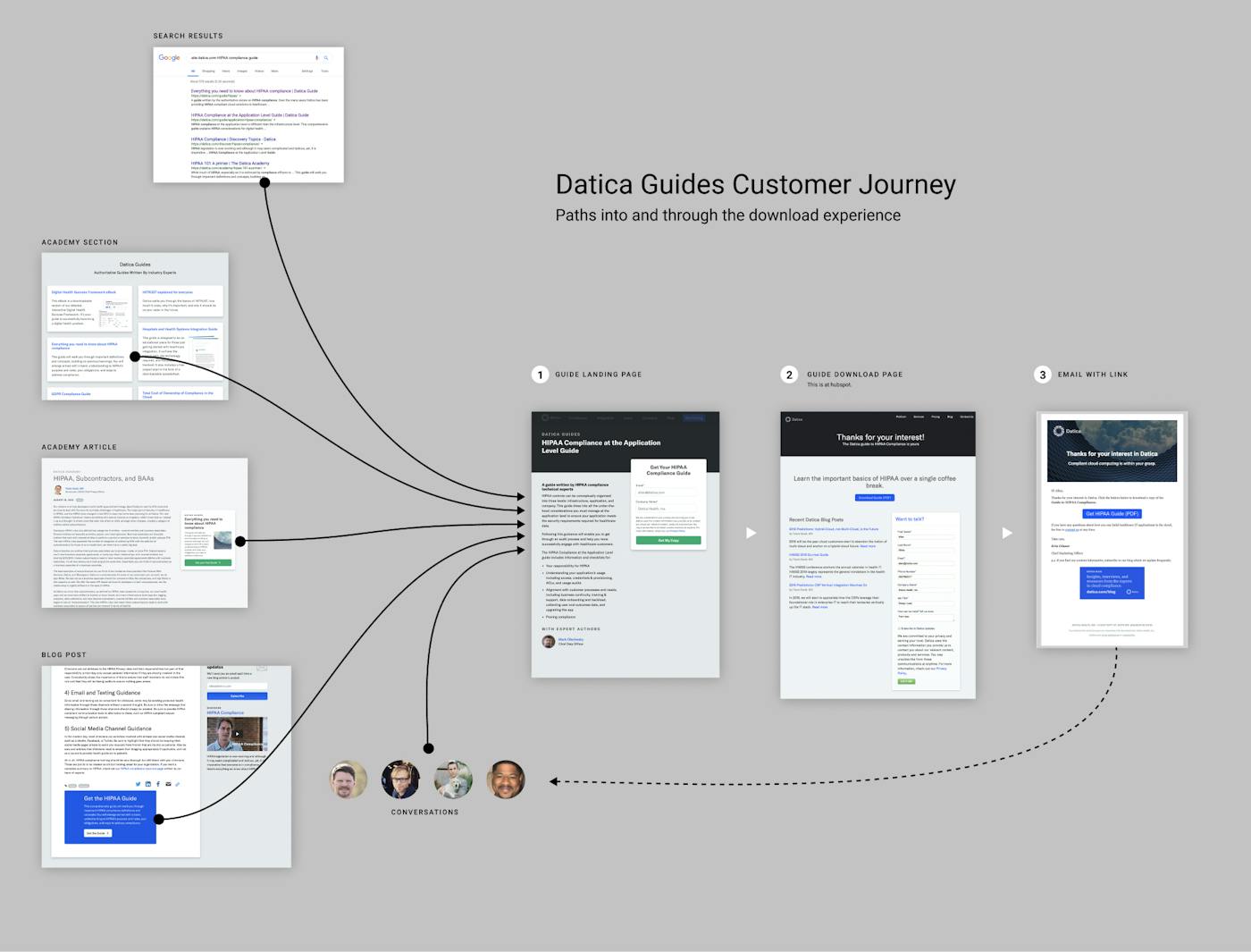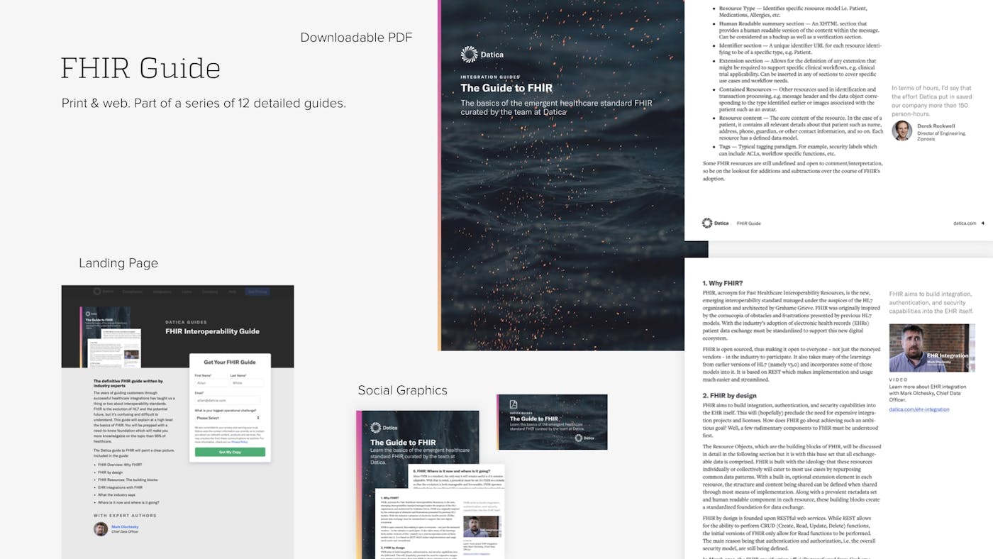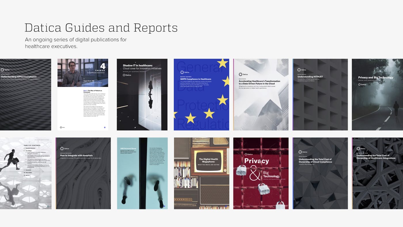 Downloadable guides, white papers, case studies, and magazine-style reports fuel Datica’s content strategy.