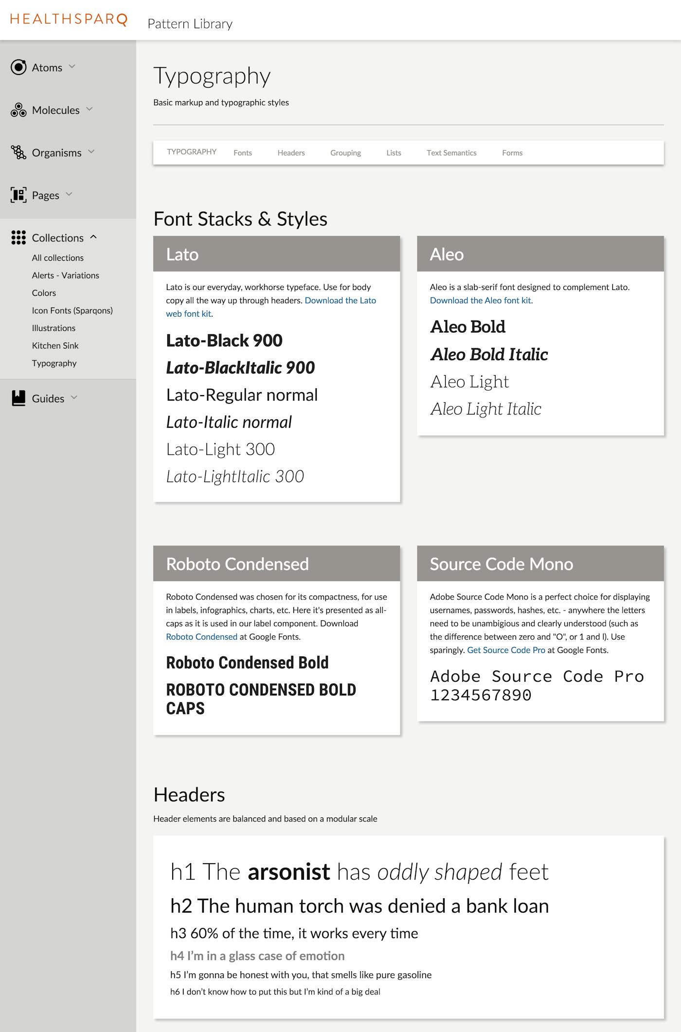 The HealthSparq Pattern Library was an internal product platform that empowered designers, product owners, researchers, QA testers and front-end developers with production tools and documentation. It was composed of an Ember web-app built by the HealthSparq UI team.