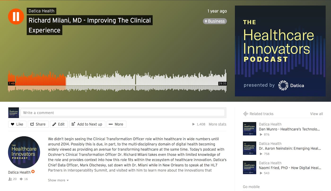 Although they were distinct visually, they both shared many attributes, born of a content marketing strategy focused on developing thought leadership in the healthcare compliance and integration space. The Healthcare Innovators Podcast was created to give Datica leadership a venue to engage with leaders in the healthcare fields.